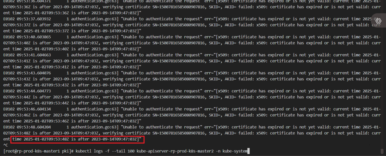 kubeadm certs renew all 更新所有证书,并重启控制平面pod。使用 kubeadm certs check-expiration 检查证书正常。api-server日志一直报证书过期,重启POD异常。